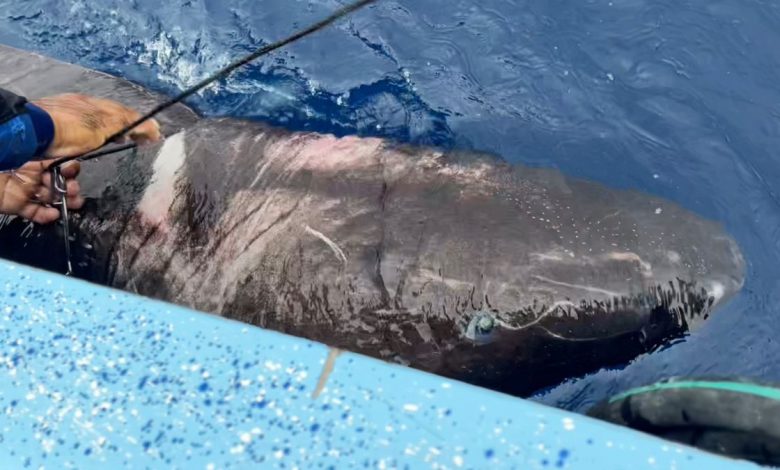 Une tempête qui approchait a forcé l’équipage à relâcher le requin presque immédiatement pour sa propre sécurité, de sorte qu’ils n’ont pas pu prélever d’échantillon génétique. Pour la nouvelle étude, Kasana et ses collègues ont étudié des séquences et des images du requin prises lors de sa capture et ont découvert qu’il partageait des caractéristiques clés avec les requins du Groenland et d’autres requins dormeurs, notamment un museau arrondi, des nageoires pectorales basses et arrondies et un œil. parasite. Selon l’étude, le requin était également lent et lent, comme le sont généralement les requins dormeurs lorsqu’ils sont capturés.