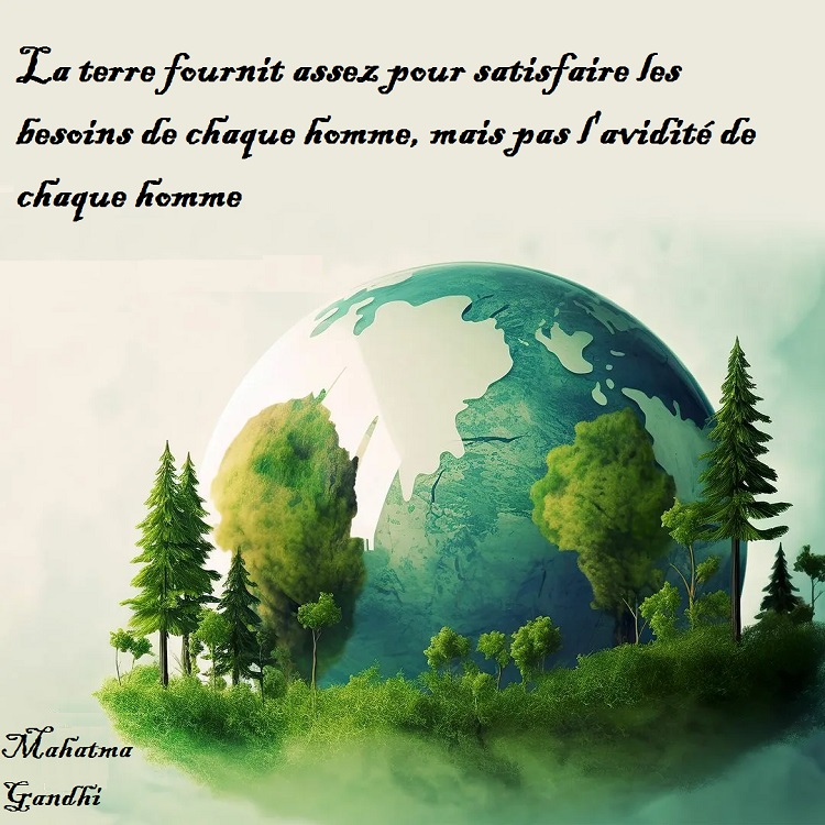 « La terre fournit assez pour satisfaire les besoins de chaque homme, mais pas l’avidité de chaque homme ». ~ Mahatma Gandhi