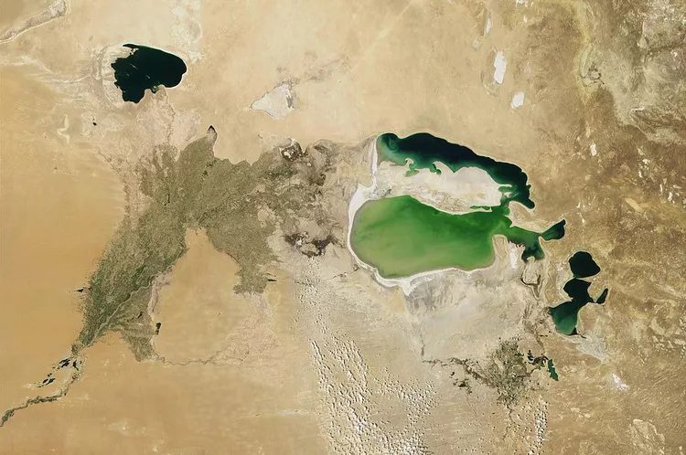La mer d’Aral ne cesse de rétrécir depuis les années 1960, lorsque l’Union soviétique a commencé à détourner les rivières qui l’alimentaient pour l’irrigation agricole. Le recul des eaux s’est accompagné d’une importante industrie de la pêche, ce qui a entraîné un taux de chômage élevé et un surplus de bateaux de pêche abandonnés sur l’ancien rivage. Désormais entièrement endoréiques, les plans d’eau restants dépendent des précipitations.