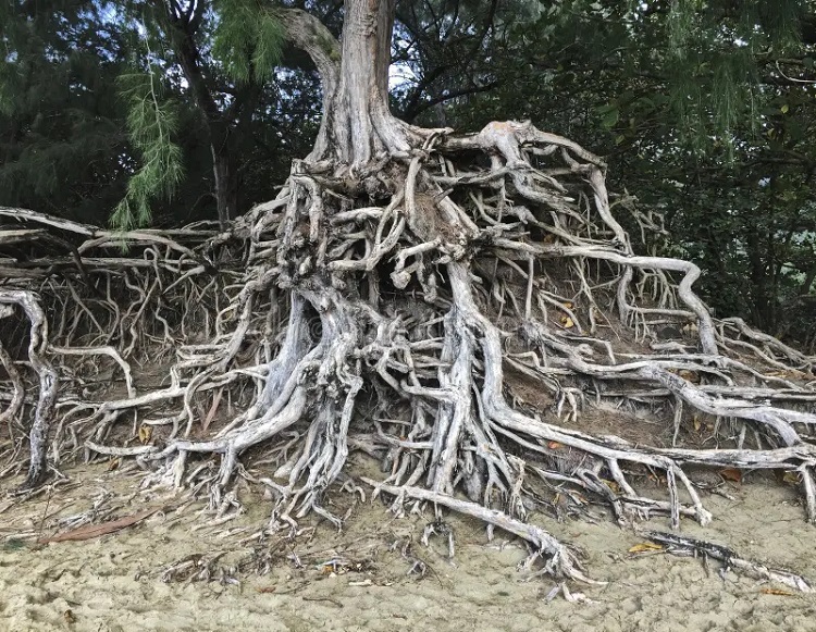 Large extension latérale : Les racines peuvent s’étendre sur 6 mètres ou plus, en particulier chez les arbres matures.