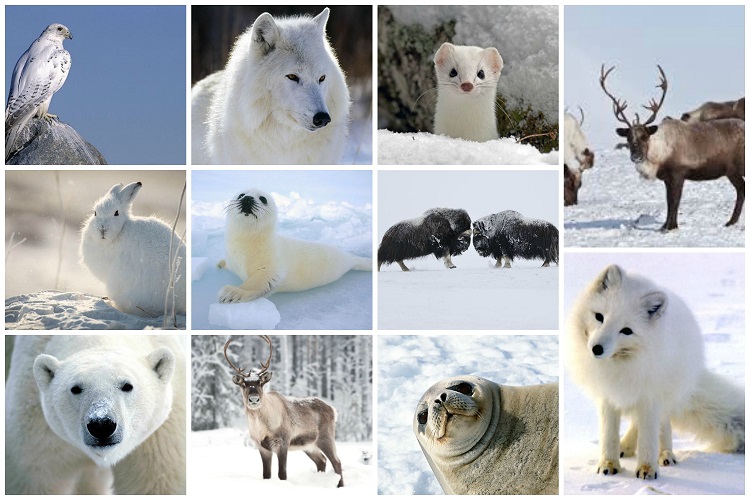 Les animaux qui résident dans le climat de la toundra doivent s’adapter de manière particulière pour survivre. Les animaux ont tendance à être grands, trapus et dotés d’une épaisse isolation. Des couches de graisse et de fourrure ou de plumes aident à protéger les animaux du froid glacial. Le plumage et le pelage d’hiver ont tendance à être blancs comme la neige, tandis que la couleur d’été tend vers le brun.