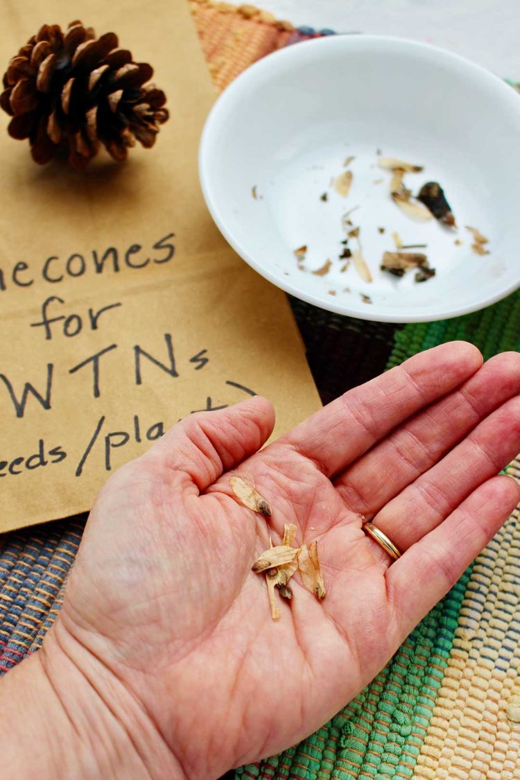 Nous avions suggéré de mettre les pommes de pin dans le congélateur et c’est ce que nous avons lu dans quelques autres endroits. Certaines graines ont besoin de certaines conditions pour germer, comme le feu ou la congélation.