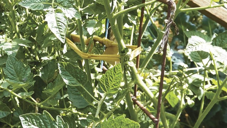 Nous découpons également des T-shirts pour en faire des liens pour les plantes, en particulier les tomates. Ils durent quelques années et vont ensuite au compost. Les vieux collants peuvent être utilisés de la même manière, ils durent longtemps, mais en raison de leurs fibres synthétiques, ils doivent généralement être jetés à la poubelle lorsque vous n’en avez plus besoin.