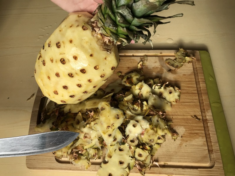 - Nettoyez l’ananas (surtout s’il n’est pas bio) pour éliminer tout pesticide résiduel.