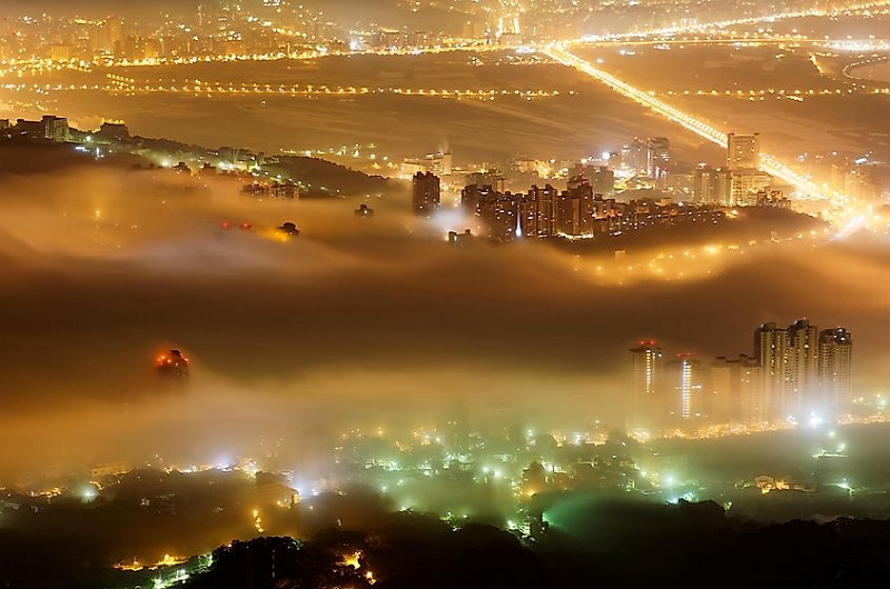 - Luminosité ambiante : halo diffus au-dessus des zones urbaines, appelé aussi “dôme lumineux”.