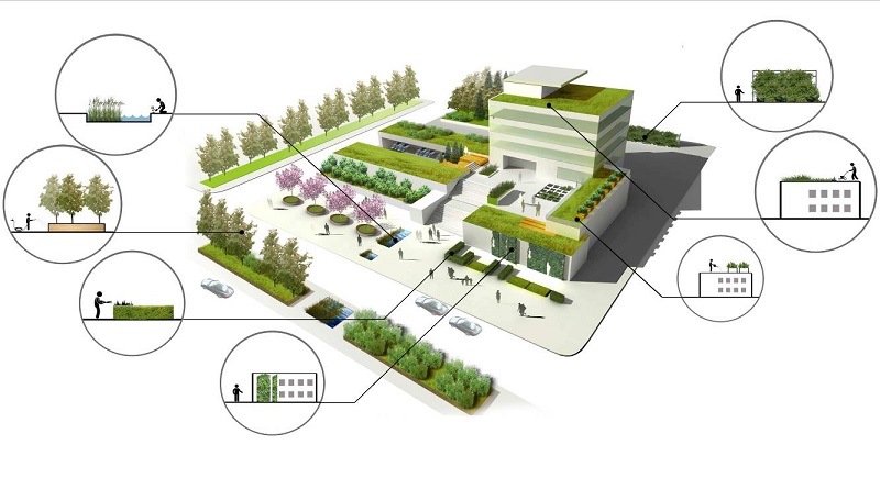 - Construction : bâtiments à énergie positive, toitures végétalisées, matériaux biosourcés (bambou, chanvre, acier recyclé)